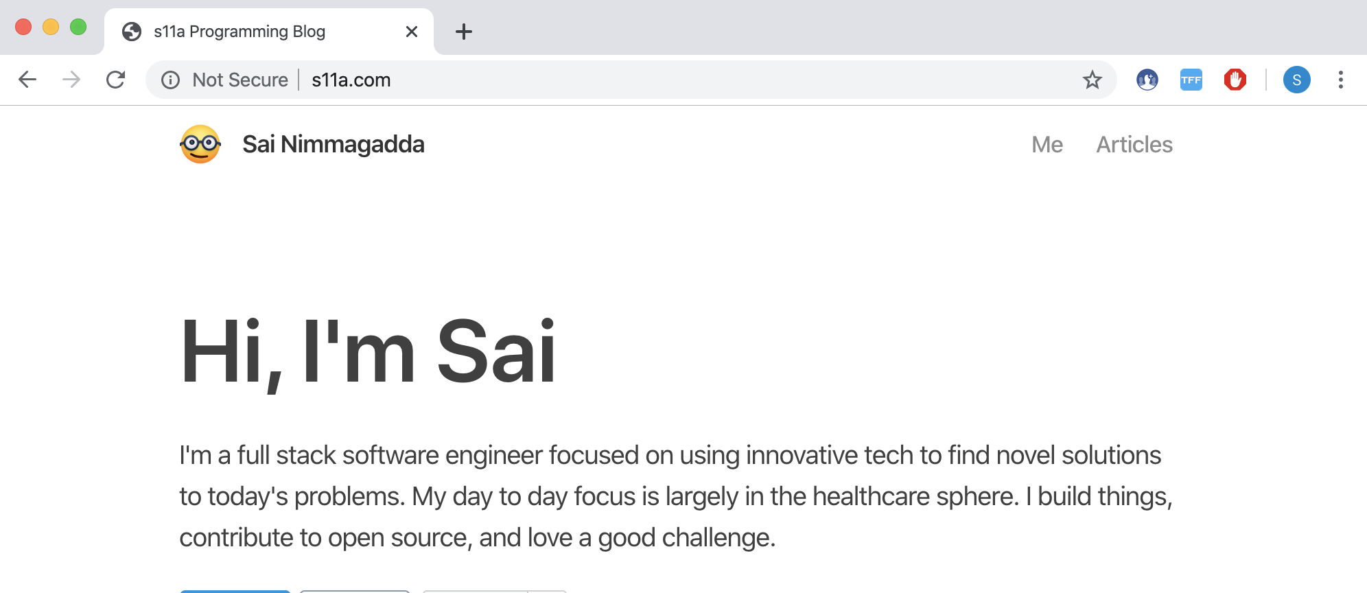 At this point you could call it a day, but peek the above address bar and take note of the "Not Secure" info message. While having an insecure site isn't necessarily a bad thing, it isn't great. Google has recently begun to penalize insecure sites. HTTPS also helps protect the site from malicious attacks and encrypts traffic between the server and the client's browser. So, let's fix this by requesting a certificate and associating it with our domain.